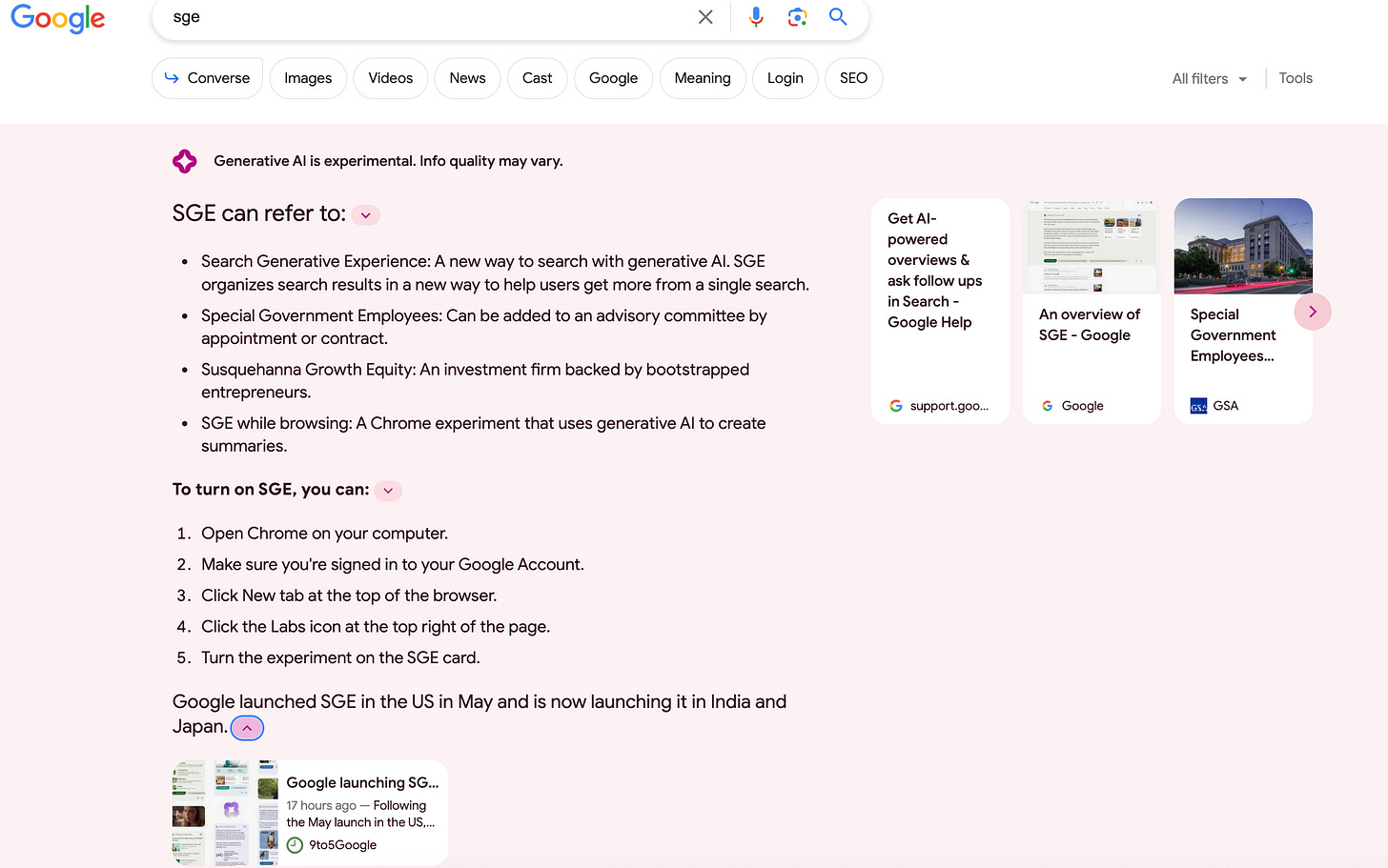 More critically, on August 31st, Google turned on SGE in India and Japan