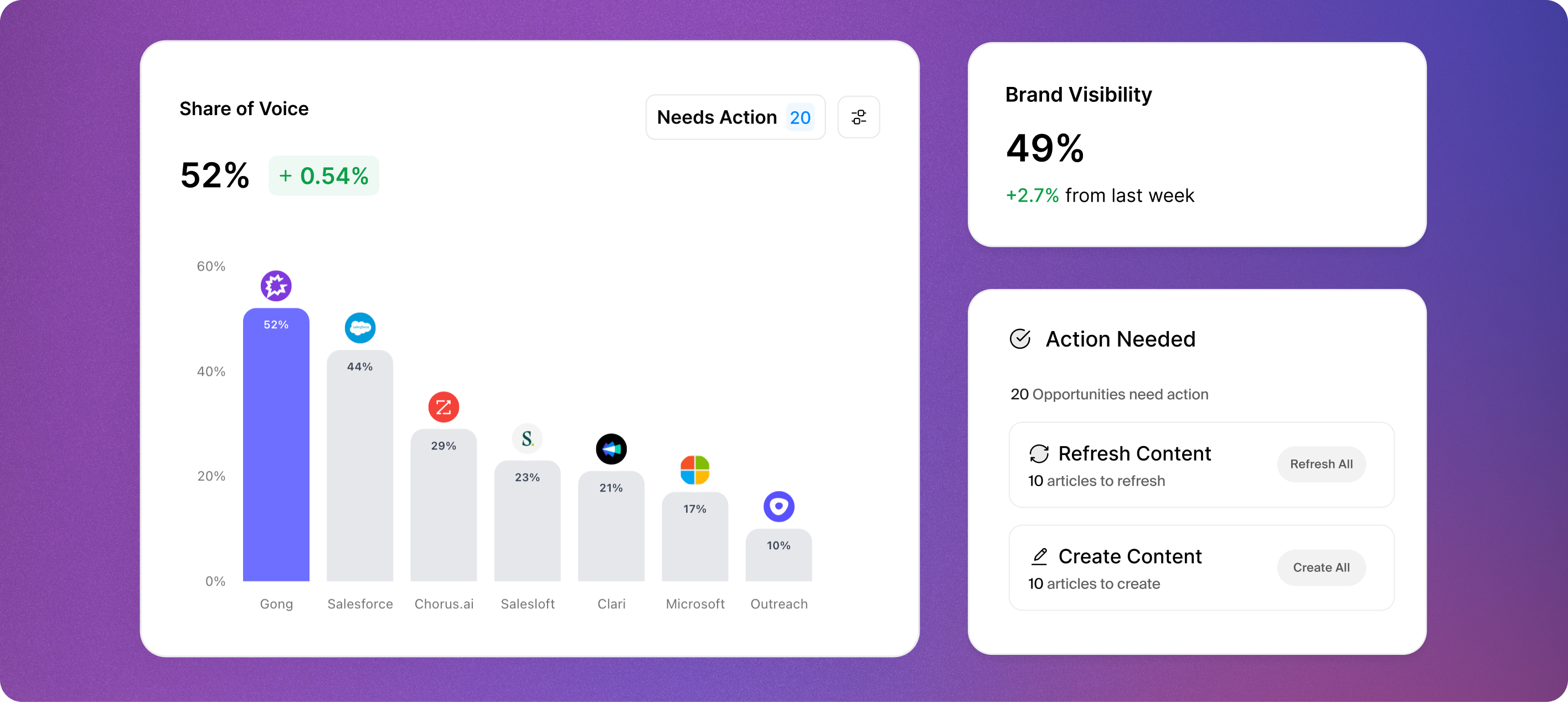 AirOps is the only all-in-one platform that shows how you stack up in AI search, tells you exactly what to do, and helps you take action at scale with quality and speed.