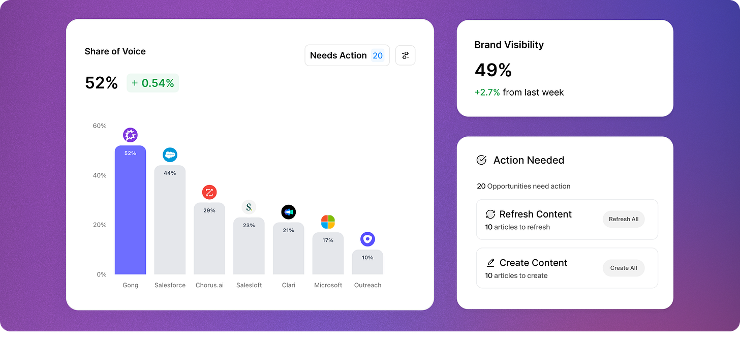 No matter how many times I stress to these leaders that the existing playbooks can be adapted to new realities without throwing out the baby with the bathwater, there is still demand for a brand-new AI playbook. With this disclaimer aside, this post will discuss tactics for AI visibility, and I am admittedly repurposing some of the same points that would be showcased in a Product-Led SEO-only post. There are, of course, nuances that apply to AEO/GEO/AIO/FOMO, because SEO today focuses solely on search results. At the same time, AI visibility is a different UI.