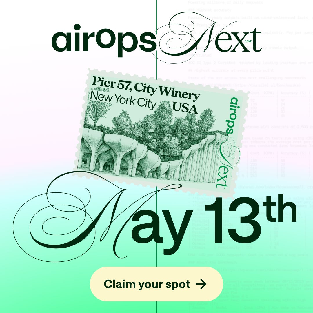 AirOps is doing something different with NEXT. One day. One stage. NYC on May 13th.