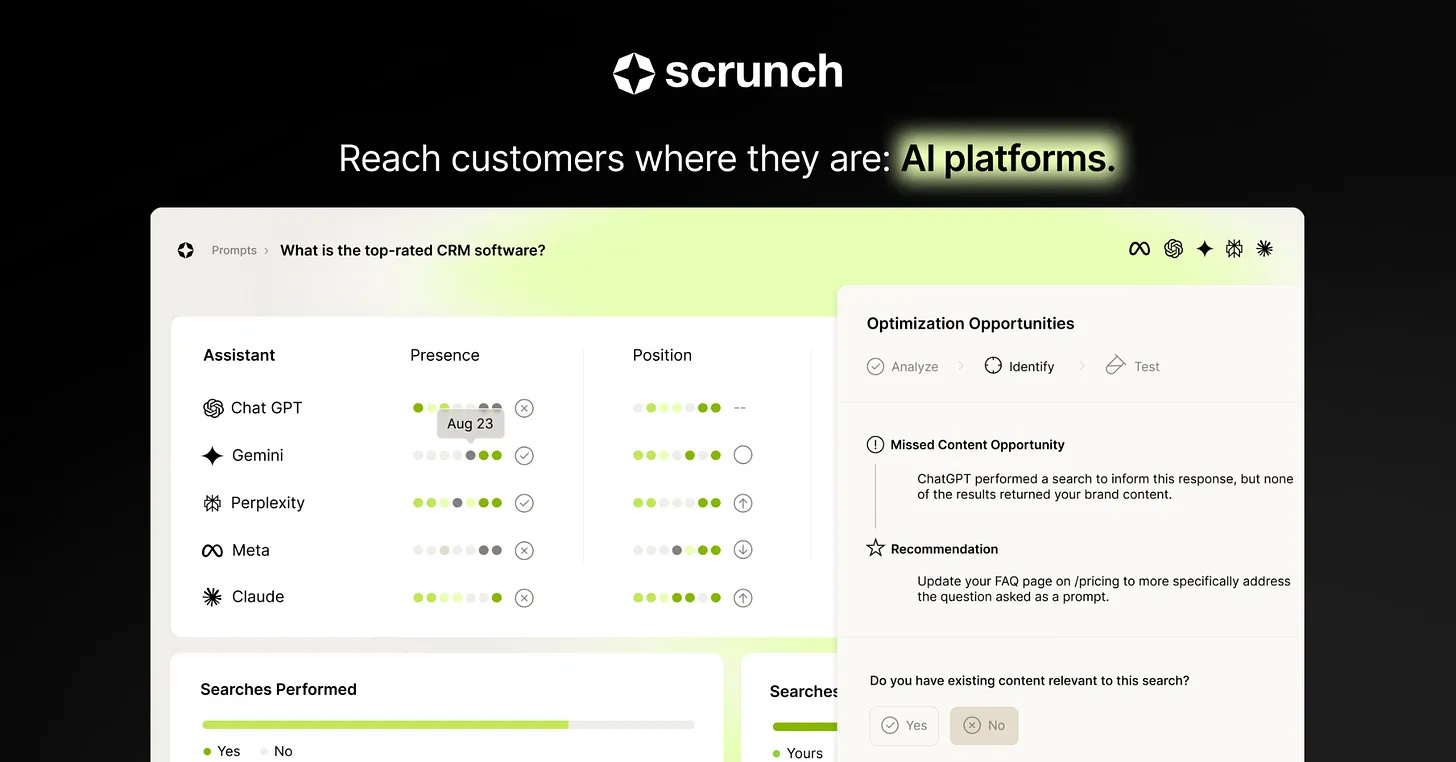 Scrunch gives you the tools and insights you need to reach customers on the next major growth channel: AI platforms.