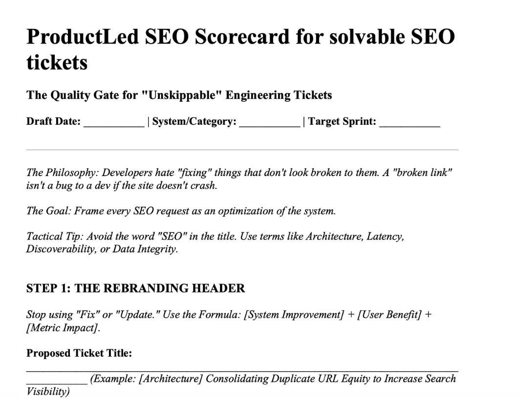 Paid subscribers can download this scorecard for analyzing and improving SEO tickets for engineering friendliness